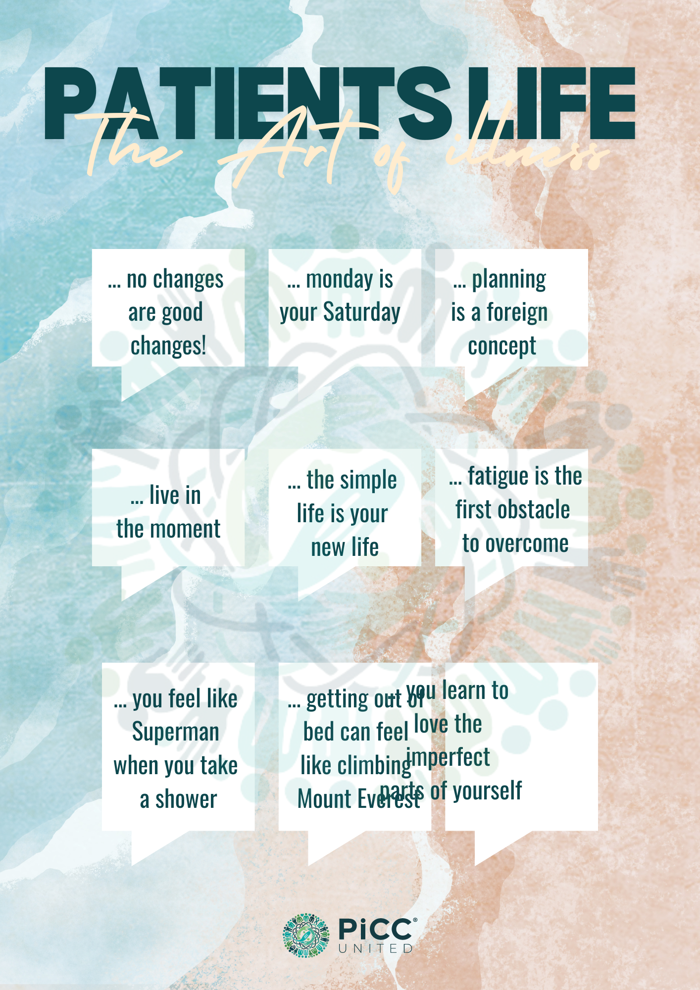 Download our poster filled with small quotes that reflect the many sides of life as a patient, from the everyday challenges to personal victories.